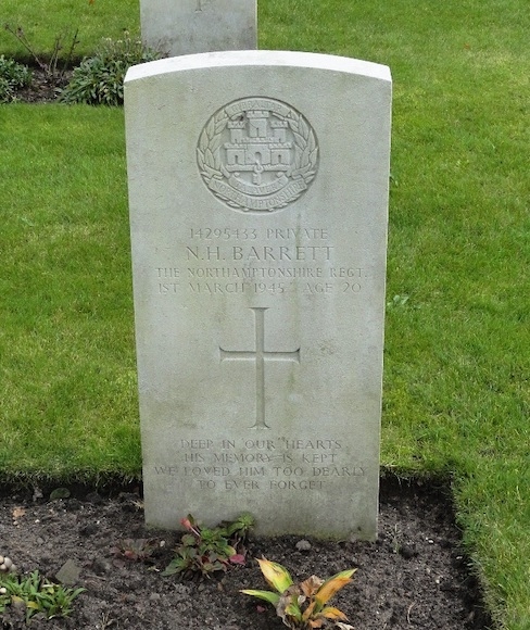 De 20-jarige soldaat Norman Henry Barrett was de zoon van James Horace Barrett en Gladys Irene Barrett-Clay en kwam uit Tottenham. Hij was met zijn onderdeel ingezet in de aanval op Lomm en Arcen op de oostelijke Maasoever, die nog in Duitse handen was. Hij zou bij het oversteken van de Maas beschoten en daardoor verdronken zijn. Aanvankelijk werd hij begraven op de kleine militaire begraafplaats in Heumen en in 1947 herbegraven op Jonkerbos War Cemetery. Op zijn graf staat de tekst: DEEP IN OUR HEARTS HIS MEMORY IS KEPT WE LOVED HIM TOO DEARLY TO EVER FORGET