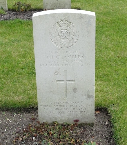 De 23-jarige driver John Hart Chambers was de zoon van Cecil Hart Chambers en Annie Meade Chambers-Warrington. Zijn ouders stierven jong en waarschijnlijk woonde hij bij zijn oom en tante John Archibald en Dora Mattison Goodman in Camborne, Cornwall. Hij was een actieve scout en woonde in de zomer van 1937 de grote wereldjamboree in Nederland bij. Hij sneuvelde op 9 maart 1945. Het is vooralsnog niet duidelijk waar en onder welke omstandigheden dat gebeurde. Aanvankelijk werd hij begraven op de voorlopige militaire begraafplaats Jonkerbos en in 1947 herbegraven op het Jonkerbos War Cemetery. Op zijn graf staat de tekst: A BELOVED SCOUT. WORLD JAMBOREE, HOLLAND 1937. "ALL HE HAD, HE GAVE TO SAVE MANKIND"