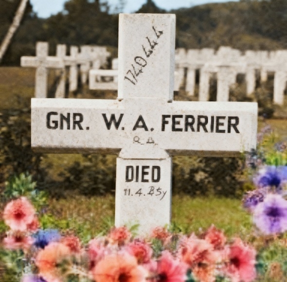 De 35-jarige Walter Ferrier kwam uit Kingsbury in Middlesex (UK), was in 1937 gehuwd met Helena Williamsen. Hij diende als schutter bij de 4e Light Anti Aircraft Regiment. Volgens de gegevens van de Commonwealth War Graves Commission overleed hij op 11 april en werd hij begraven op de voorlopige militaire begraafplaats Marienbosch. Het is vooralsnog niet duidelijk onder welke omstandigheden hij om het leven kwam. Zijn stoffelijke resten zijn in 1947 herbegraven op de militaire begraafplaats Jonkerbos te Nijmegen. Op zijn graf staat de tekst: REST IN PEACE TILL WE MEET AGAIN