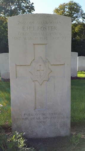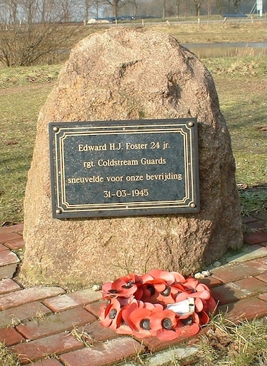 De 24-jarige Guardsman Edward Henry John Foster was de zoon vn Edwin Henry en Florence Lucy Foster. Met zijn onderdeel was hij betrokken bij de bevrijding van de Achterhoek. Als verkenner ging hij voor de geallieerde troepen uit om Neede te inspecteren maar werd daar gedood door een kogel die op hem werd afgevuurd door een achtergebleven Duitse soldaat. Hij werd aanvankelijk begraven in een veldgraf, 100 meter ten zuidwesten van de spoorlijn, ten zuidoosten van de weg (nabij station Kisveld), aan de N315, tussen Berculo en Neede. Hij werd herbegraven op 2 juni 1947 op de Jonkerbos Oorlogsbegraafplaats. Op zijn graf staat de tekst: IN EVERLOVING MEMORY OF OUR DEAR DEVOTED SON EDDIE