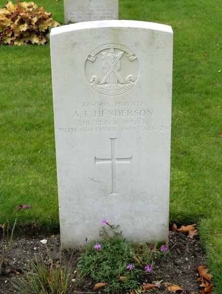 De 29-jarige soldaat Albert Todd Henderson was de zoon van William Henderson en Lizzie Henderso-Todd en zij woonden in de county Angus in Schotland. Hij was in de zomer van 1944 gewond geraakt aan het front en kon thuis herstellen. Hij voegde zich later dat jaar weer bij zijn onderdeel van de Black Watch (Royal Highlanders) en was betrokken bij de gevechten in de Betuwe. Op 22 november sneuvelde hij bij gevechten in de buurt van Hemmen. Hij kreeg daar een voorlopig graf. In 1947 werd zijn stoffelijk overschot overgebracht naar Jonkerbos War Cemetery.