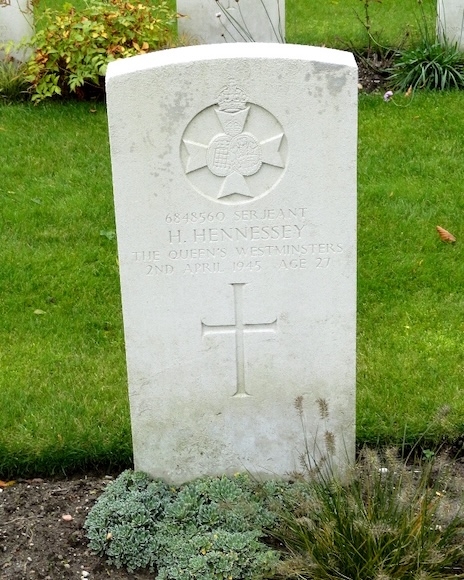 De 27-jarige Serjeant Henry Hennessey was met zijn onderdeel betrokken bij de gevechten in de opmars naar Enschede. Door hevige Duitse tegenstand verloor hij het leven. Hij werd aanvankelijk begraven op het kerkhof in Delden (Gelderland) en in 1947 herbegraven op Jonkerbos War Cemetery.
