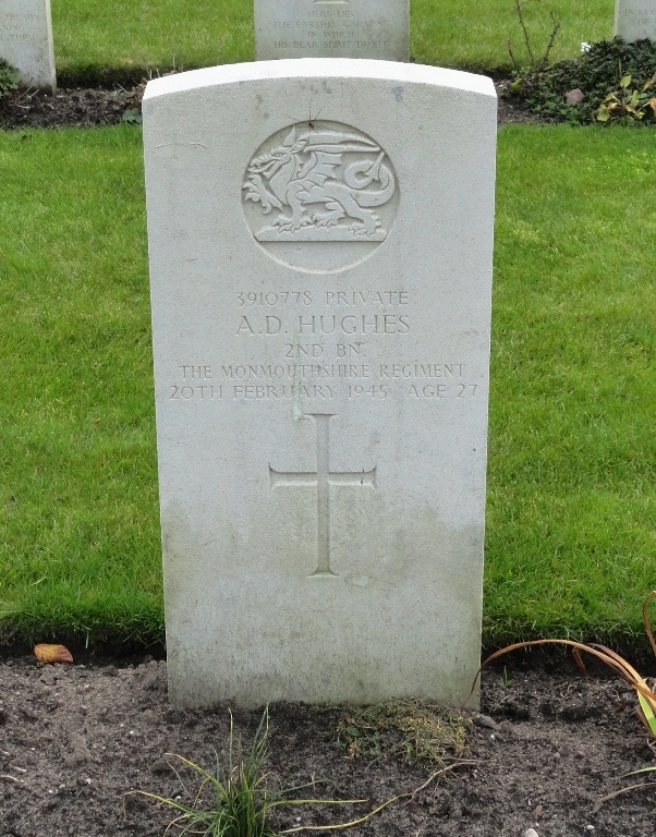 Arthur David Hughes was 27 jaar toen hij als soldaat van het 2e bataljon van het Monmouthshire Regiment van het Britse leger op 20 februari 1945 sneuvelde. Zijn regiment nam toen deel aan de Operatie Veritable die tot doel had het Duitse Rijnland ten zuidoosten van Nijmegen te veroveren. Hij overleed aan zijn verwondingen op 20 februari. Het is vooralsnog niet duidelijk waar hij deze opliep. aanvankelijk werd hij begraven de de Britse begraafplaats Marienbosch en in 1947 herbegraven op Jonkerbos War Cemetery.