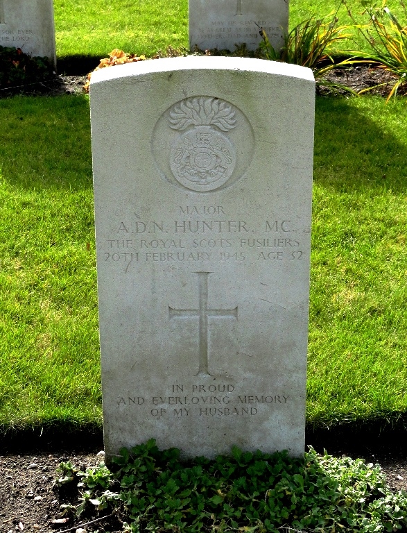 De 32-jarige Majoor Anthony Douglas Northey Hunter was de zoon van Lt.-Col. Douglas H. K. Hunter (Royal Artillery) en Lilian Beatrice Hunter- Northey. Hij trouwde met Mildred Hazel Allison. Beide families hadden een militaire traditie. Majoor Anthony D.N. Hunter had al een grote staat van dienst tijdens de oorlog en werd meerdere malen onderscheiden, zoals met Medal for Distinguished Service in Battle (U.S.S.R.) en het Militairy Cross voor zijn optreden tijdens de strijd in het Midden-Oosten/Noord-Afrika.