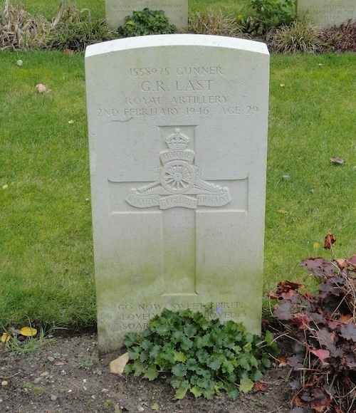 De 29-jarige Gunner George Russell Last was de zoon van Alfred Russell Last en Bertha Lilian Last-Skipper. Hij was getrouwd met Joan Last en woonde in Ipswich. Hij overleed op 2 februari 1946, misschien door verdrinking. Het is vooralsnog niet duidelijk wat precies de omstandigheden van zijn overlijden waren. Aanvankelijk werd hij begraven op de militaire begraafplaats Jonkerbosch en in 1947 herbegraven op Jonkerbos War Cemetery. Op zijn graf staat de tekst: GO NOW, SWEET SPIRIT, LOVELY AND BELOVED; SOAR OUT, RELEASED INTO THE INFINITE