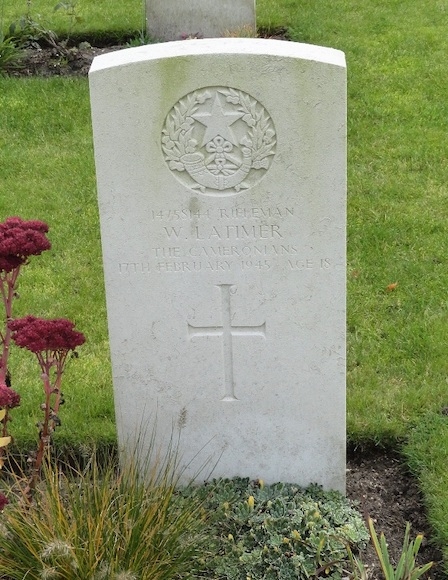 De 18-jarige Rifleman William Latimer was de zoon van William Latimer en Emma Latimer-Boyd. Zijn onderdeel was betrokken bij de opmars naar het Rijnland. Bij gevechten werd hij ernstig gewond. Vooralsnog is niet duudelijk waar dat precies gebeurde. Hij overleed aan de gevolgen hiervan op 17 februari. Aanvankelijk werd hij begraven op het Britse militaire kerkhof Marienbosch en in 1947 herbegraven op Jonkerbos War Cemetery.