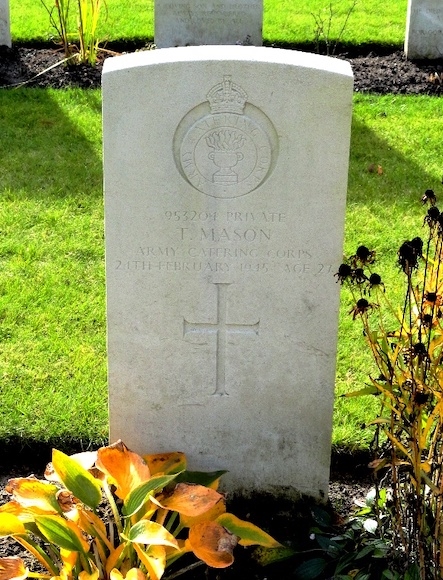 De 27-jarige soldaat Thomas Mason hoorde bij het onderdeel dat de bevoorrading en verzorging van de troepen tot taak had van de Royal Artillery. Hij werd bij de uitvoering hiervan ernstig gewond en overleed op 24 februari. Het is vooralsnog niet duidelijk waar dat gebeurde, maar waarschijnlijk in het kader van de opmars richting Rijnland. Aanvankelijk werd hij begraven op de Britse begraafplaats Marienbosch en in 1947 herbegraven op Jonkerbos War Cemetery.