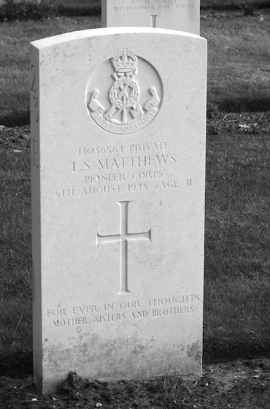 De 31-jarige soldaat Lloyd Stanley Matthews was de zoon van Herbert James Matthews en Mary Matthews-Skinner. Hij diende als soldaat bij het Pioneer Corps. Op 5 augustus 1945 overleed hij. Het is vooralsnog niet bekend wat de oorzaak van zijn overlijden is. Aanvankelijk werd hij begraven op de militaire begraafplaats Jonkerbosch en in 1947 herbegraven op Jonkerbos War Cemetery. Op zijn graf staat de tekst: FOR EVER IN OUR THOUGHTS. MOTHER, SISTERS AND BROTHERS