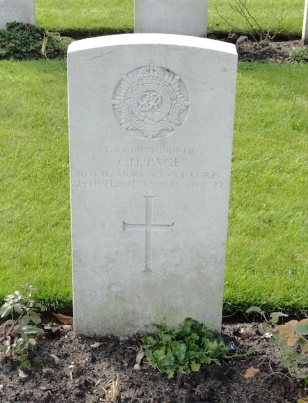 De 22-jarige chauffeur Charles Henry Page was de zoon van Arthur Page en Florence Page-McCormick. Hij trouwde in 1942 met Victoria Florence Quinlin en woonde in East Ham. Zijn onderdeel nam deel aan de opmars naar het Rijnland. Hierbij werd hij zo ernstig gewond dat hij op 24 februari overleed. Het is vooralsnog niet duidelijk waar dat precies gebeurde. Hij werd aanvankelijk begraven op de Britse begraafplaats Marienbosch en in 1947 herbegraven op Jonkerbos War Cemetery.