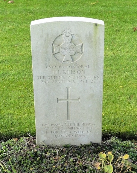 Der 28-jarige Jack Halton Reeson was de zoon van George Ingamells Reeson en Elizabeth Ada Reeson-Codling. Met zijn onderdeel was hij betrokken bij de opmars richting Duitsland toen hij bij gevechten op 2 april 1945 om het leven kwam. Korporaal Jack Halton Reeson werd aanvankelijk begraven in een veldgraf aan de weg tussen Delden en Bentelo (Overijssel).