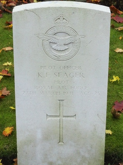 Kenneth Frank Seager was de zoon van Frank en Emma Seager, Great Totham, Essex. Hij was op weg met Whitley Armstrong Whitworth Whitley Mk V, Z6470 EY-G voor een aanvalsvlucht op Düsseldorf. Zijn toestel werd neergeschoten door een Duitse jachtvlieger bij Helenaveen/Sevenum. De hele bemanning kwam hierbij om het leven. In 1947 werden hun lichamen herbegraven op de begraafplaats Jonkerbos van de Commonwealth. Hij werd posthuum in december 1944 door de koning onderscheiden met het Militair Kruis vanwege zijn aandeel in de strijd in Noord-West Europa.