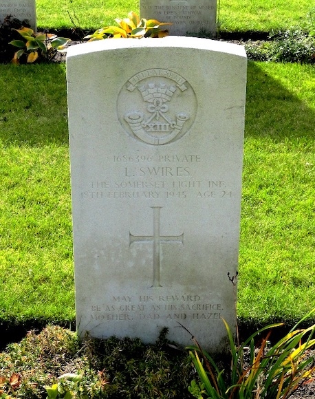 De 24-jarige soldaat Lewis Swires was de zoon van John Th. Swires en Agnes Swires-Hague. Zijn onderdeel werd ingezet voor de opmars richting Rijnland in het kader van Operatie Veritable. Bij gevechten raakte hij zo ernstig gewond, dat hij op 18 februari overleed. Het is vooralsnog niet duidelijk waar dat gebeurd is. Aanvankelijk werd hij begraven op de Britse begraafplaats Marienbosch en in 1947 herbegraven op Jonkerbos War Cemetery.