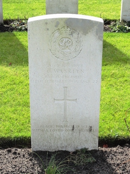 De 22-jarige Sapper Clifford Wanklyn was de zoon van Price and Elizabeth Wanklyn-Morrid. Hij was in 1941 getrouwd met de Noord-Ierse of Maureen Russell . Hij diende bij een onderdeel dat vanaf 6 juni 1944 werd ingezet voor de bevrijding van Noord-West Europa. Toen in 1942 zijn dochtertje overleed, keerde hij terug naar huis en kreeg verlof ook daar van zijn eerder opgelopen verwondingen te genezen. Hij voegde zich later weer bij zijn onderdeel en raakte bij gevechten op 12 februari dodelijk gewond. Volgens de informatie van familie zou dat gebeurd zijn bij de Waalbrug. Aanvankelijk werd hij begraven op de militaire begraagplaats Marienbosch en in 1947 herbegraven op Jonkerbos War Cemetery. Op zijn graf staat de tekst: PEACE, PERFECT PEACE? WITH A LOVED ONE FAR AWAY