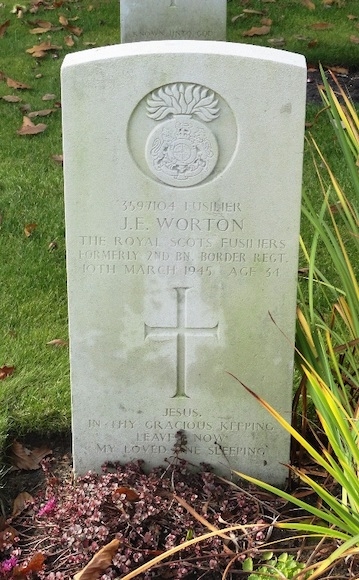 De 34-jarige fusilier James Edward Worton was met twee andere fusiliers van zijn onderdeel, William John Little en , bezig met een stormboot vanuit Nijmegen de Waal over te steken om vaste voet aan de grond te krijgen, maar door sterke Duitse weerstand mislukte dit. Zij kwam alledrie om het leven en zij werden begraven op de voorlopige militaire begraafplaats Jonkerbosch. In 1947 werden de stoffelijke overschotten overgebracht naar Jonkerbos War Cemetery. Op zijn graf staat de tekst: JESUS, IN THY GRACIOUS KEEPING LEAVE I NOW MY LOVED ONE SLEEPING